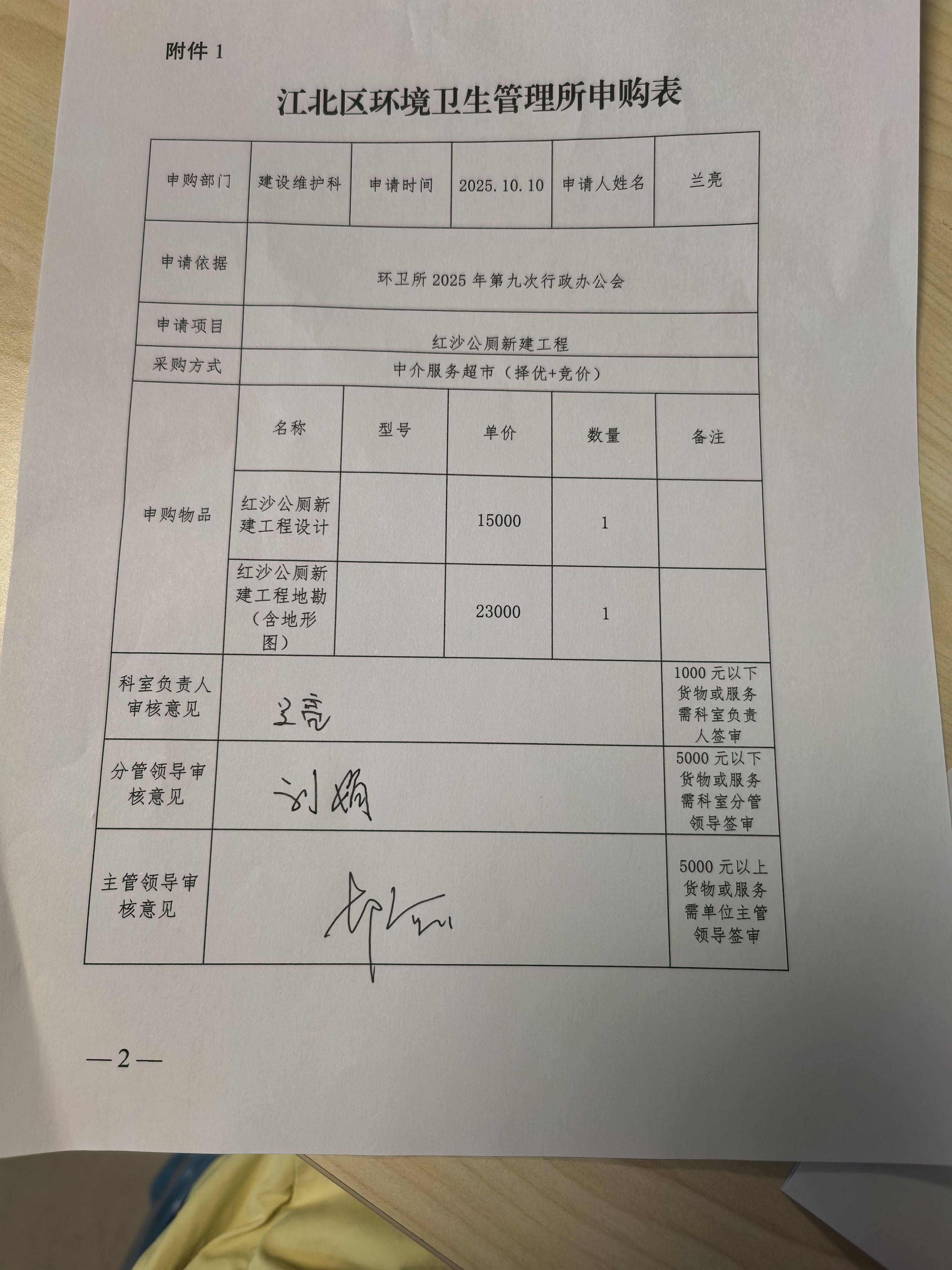 项目名称 | 重庆市江北区环境卫生管理所对红沙公厕新建项目进行工程设计方案 |